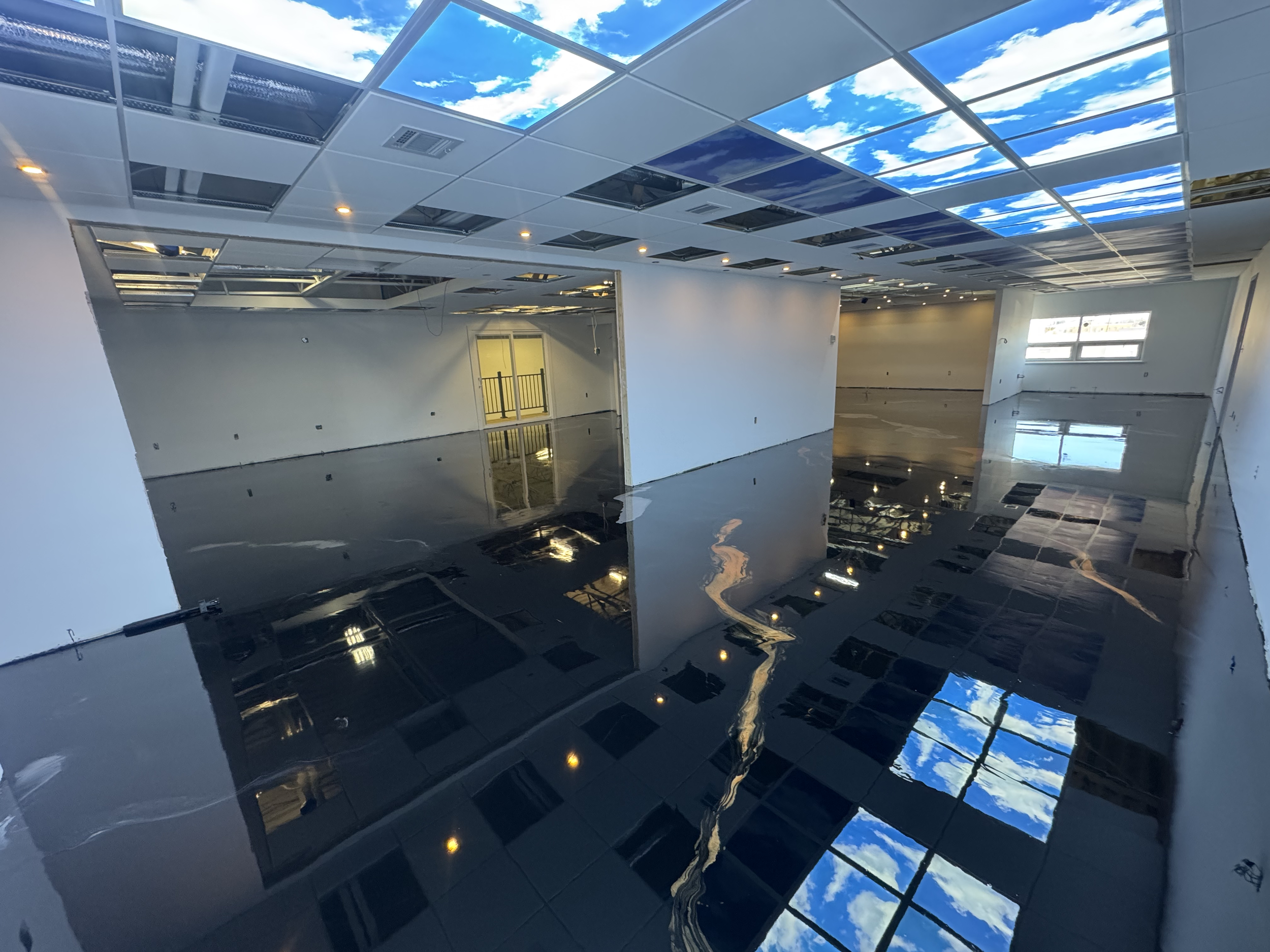 Many commercial epoxy floors fail due to improper surface preparation or lack of moisture mitigation. We use diamond grinding and professional vapor barrier systems to ensure long-term durability in high-traffic office environments.